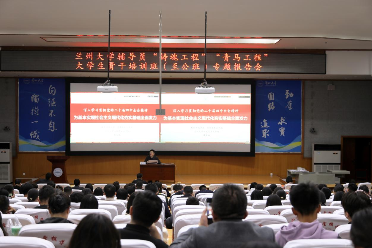为引导广大师生深入准确理解党的二十届四中全会精神,以实际行动投身教育强国、科技强国、人才强国建设,10月28日,兰州大学在榆中校区举办辅导员“铸魂工程”第二十六讲辅导报告暨“青马工程”大学生骨干培训专题报告会,邀请马克思主义学院院长蔡文成教授做专题辅导。报告会由校团委书记赵赟主持。