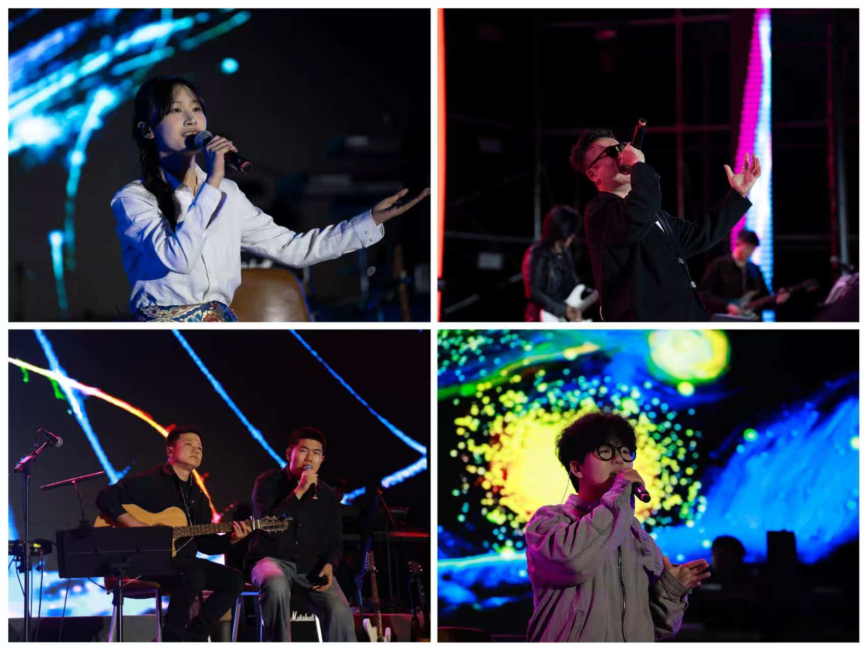 此外,具有情怀特质的曲目深化活动情感内涵。《敕勒歌》以空灵唱腔勾勒意境,融合自然美与人文情怀,让师生感受文化魅力;《故乡》以质朴歌词和深情演绎触动学子内心,拉近师生情感距离;《心脏》《鲜花》《山丘》等曲目通过有力表达传递坚守梦想、勇毅前行的精神,引发师生认同。歌会期间,台上台下互动频繁,歌手到舞台边缘与观众挥手,观众以掌声、欢呼声回应,营造良好互动氛围,彰显兰大师生团结向上的精神风貌。