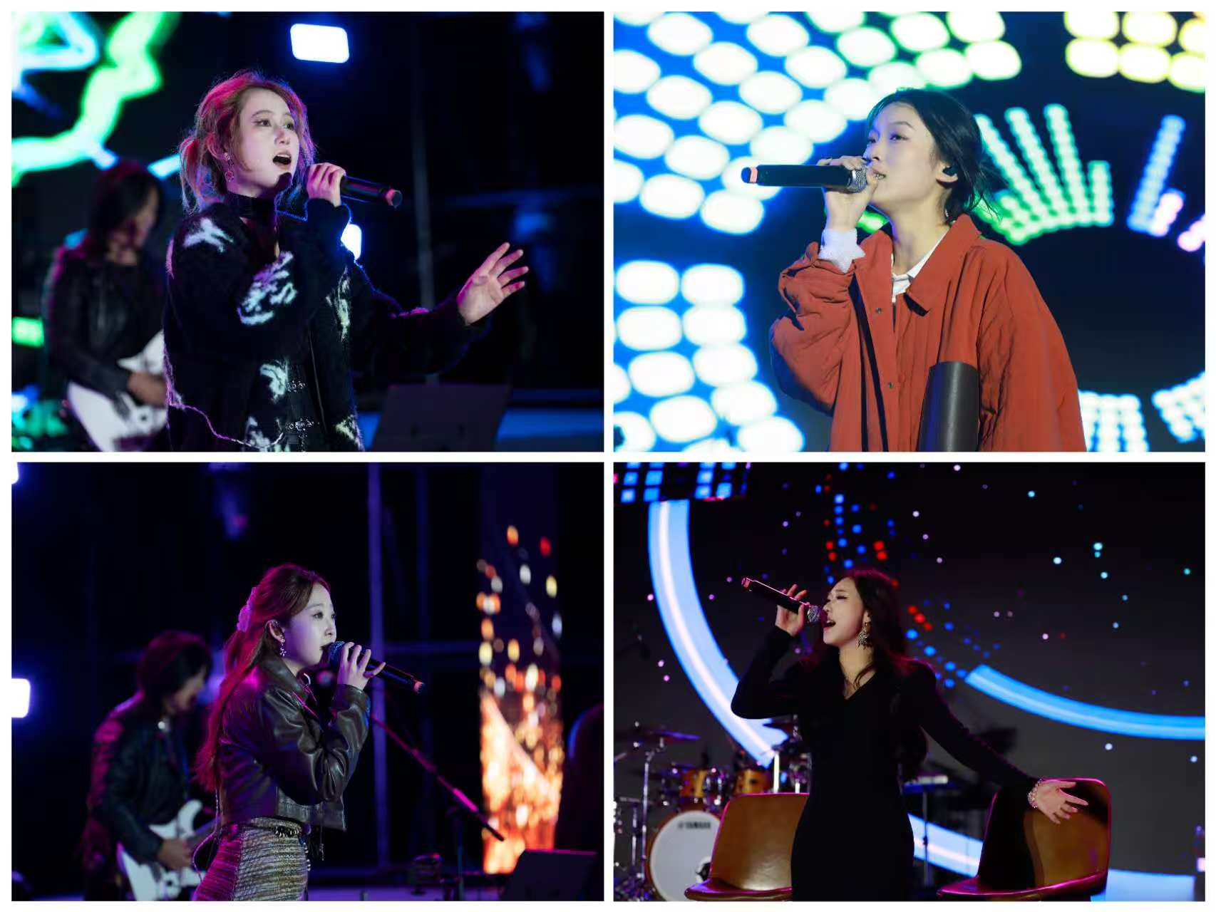 开篇曲《我的祖国》以深情旋律引发全场共鸣,台上歌手演唱,台下师生跟唱,歌声回荡,荧光棒与灯光交织,凝聚情感氛围。随后,多首风格不同的曲目轮番登场,展现青春多元:《红日》旋律昂扬、鼓点有力,歌手演绎激发师生斗志;《Your man》《我的美丽》曲风细腻婉转,传递青春浪漫与憧憬,氛围温馨;《突然想起你》《寂寞的季节》唱腔真挚,唤起师生青春记忆共鸣,不少师生跟唱,展现对生活的热爱与成长感悟。