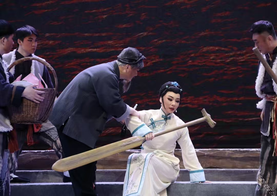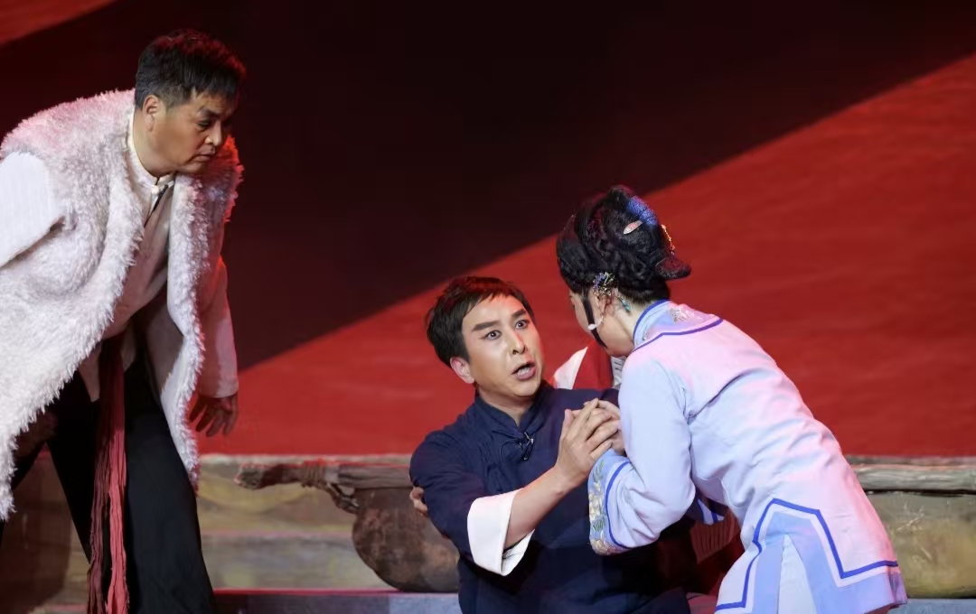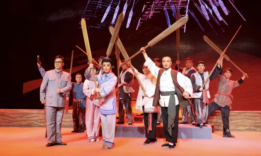 演出伊始,激昂的序曲便将观众拉回上世纪三十年代末的金城兰州。白塔山下,黄河浪涛翻涌,刘记筏客栈的命运在风雨中飘摇:女掌柜朱槐花丧夫后独撑家业,既要应对小叔子的暗中算计、婆婆的层层误解,更要直面军阀与奸商对码头控制权的觊觎、日寇轰炸带来的家国破碎。舞台上,演员们用细腻的身段、高亢的陇剧调式,将个人恩怨与民族大义层层铺展,让观众真切触摸到黄河儿女在风雨飘摇中的挣扎、坚守与抉择。