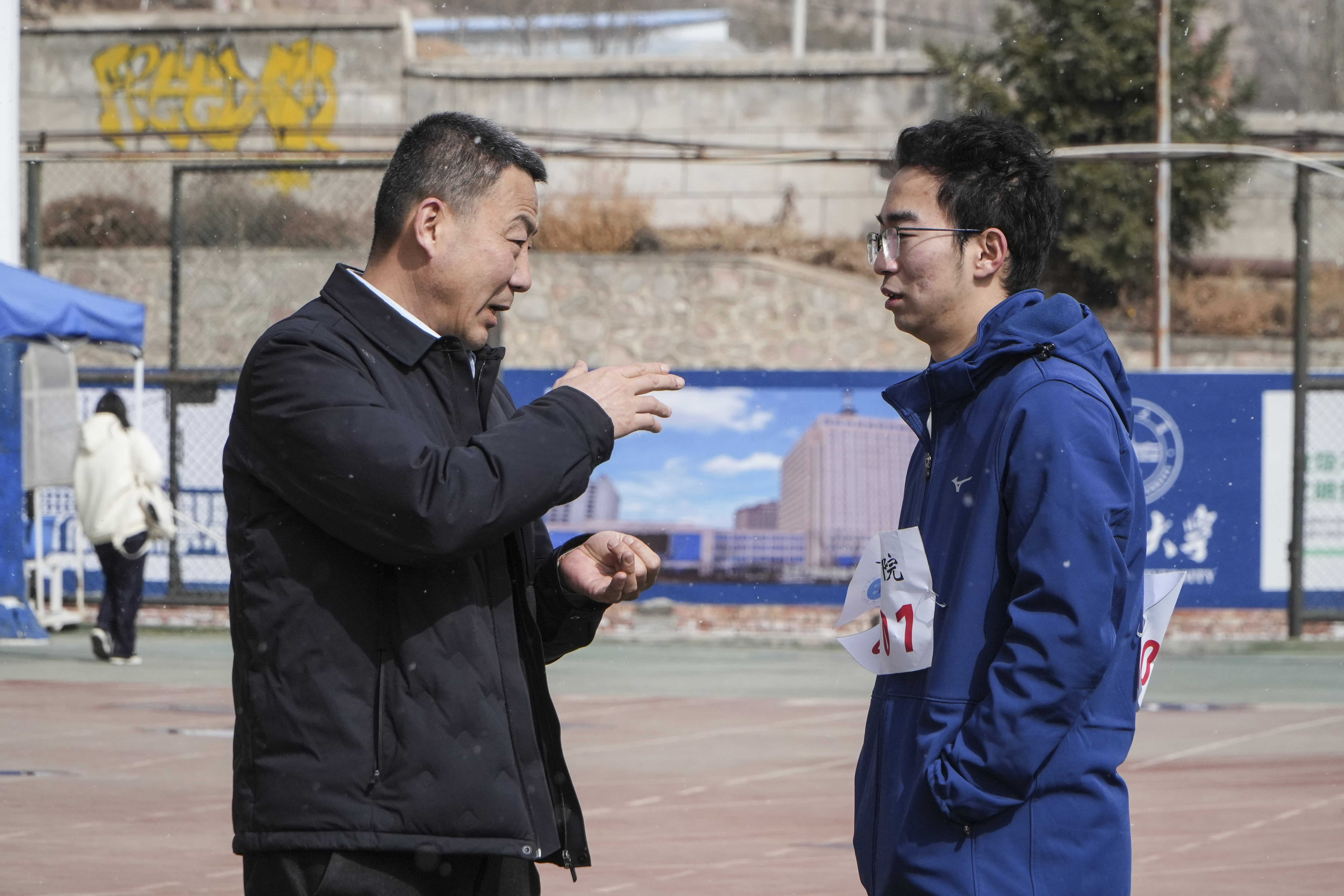 比赛间隙,学院教师与同学们亲切交流,了解学生的思想状况、学习困惑、所需所盼等,真正做到了“走进学生生活、走进学生学习、走进学生心灵”。