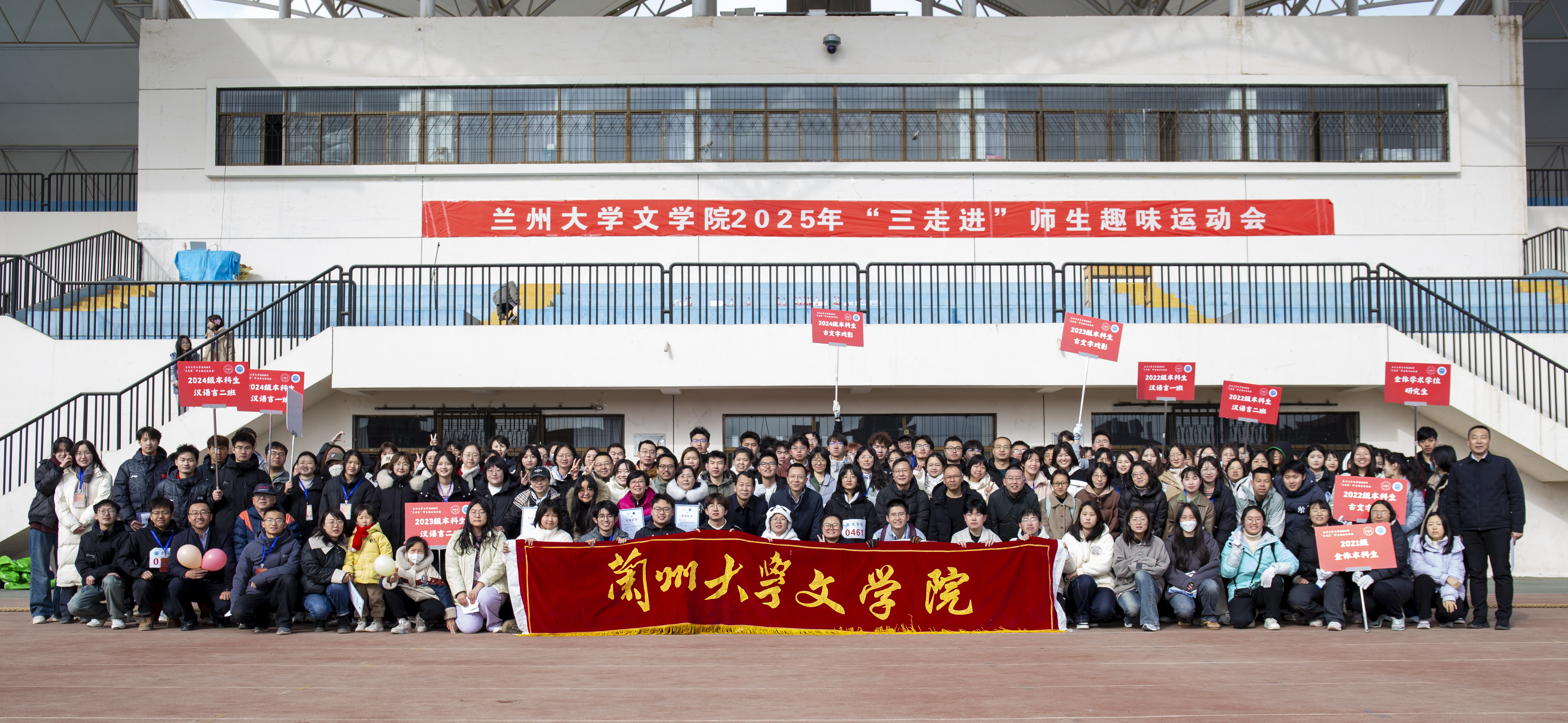信念如炬,步履铿锵。本次“三走进”师生趣味运动会,不仅彰显了文学院学子朝气蓬勃、积极向上的青春形象,而且在紧张激烈的竞赛之余,促进了不同年级同学之间的友好情谊,推动了师生间的教育互动与心灵契合,成为学院师生交流的新平台,生动展现了全院师生团结一心、勇于挑战的精神面貌。此次盛事将成为全院师生砥砺前行的新起点,激励大家在学业探索与科学研究的道路上,继续秉持积极进取的态度,传承并发扬兰州大学百年积淀的奋斗精神,不断攀登新的高峰。