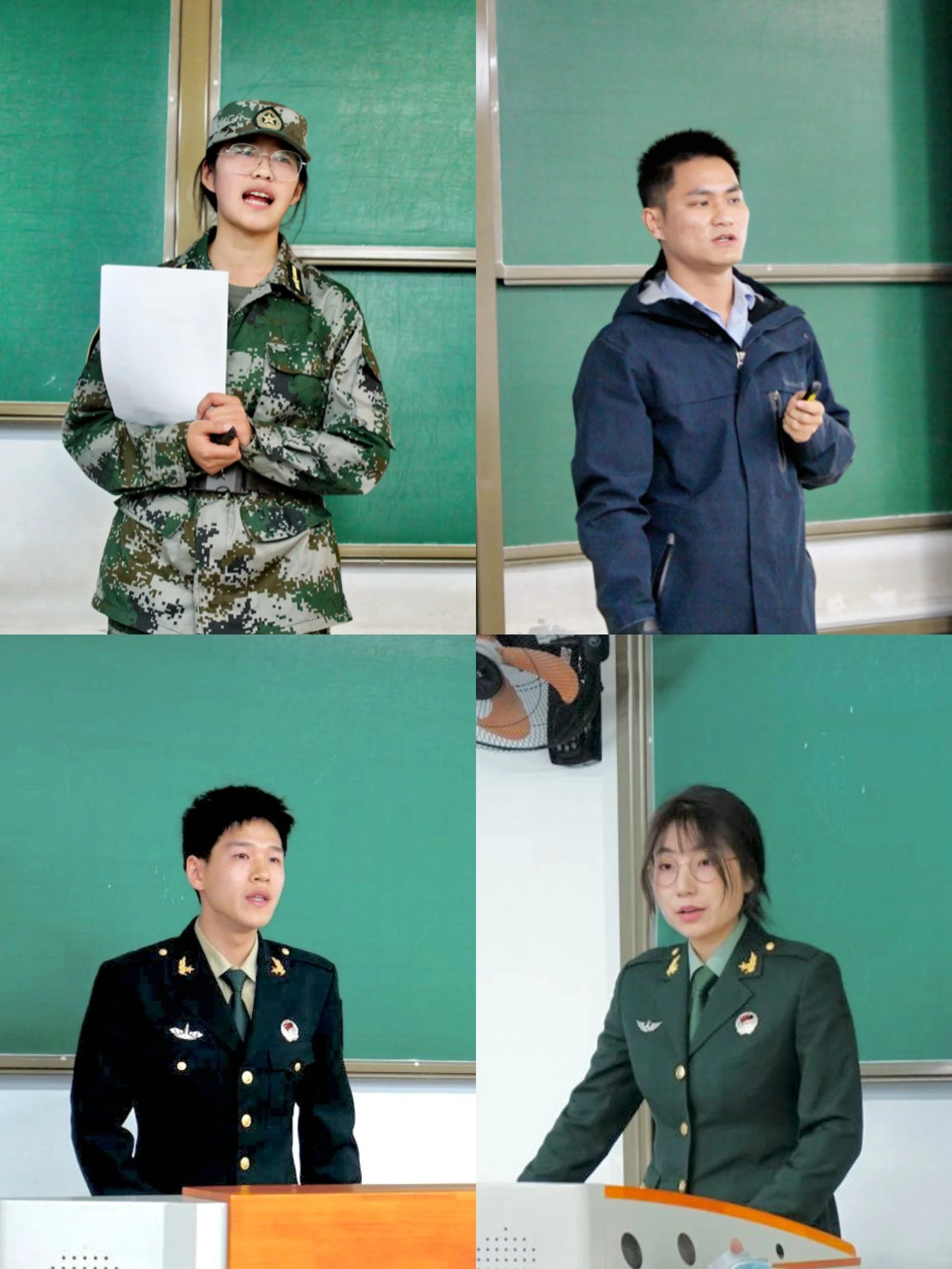 在活动现场,牛亚榕同学讲述了李向群从军理想、军营历练及抗洪牺牲的感人事迹,展现其短暂而壮丽的一生,引发同学们强烈共鸣,并号召大家传承英烈精神、立志报国;腾文宝同学从法律义务、征集条件、应征指南、优待政策四方面解读征兵政策,帮助同学们了解征兵要求与福利,助力青年担责;邹骏同学分享两年军营经历,以自身成长为例号召青年参军,鼓励他们在保家卫国中实现人生价值;杨欢同学则以军旅生活视频作结,展现战士高强度训练的艰辛,感动全场。