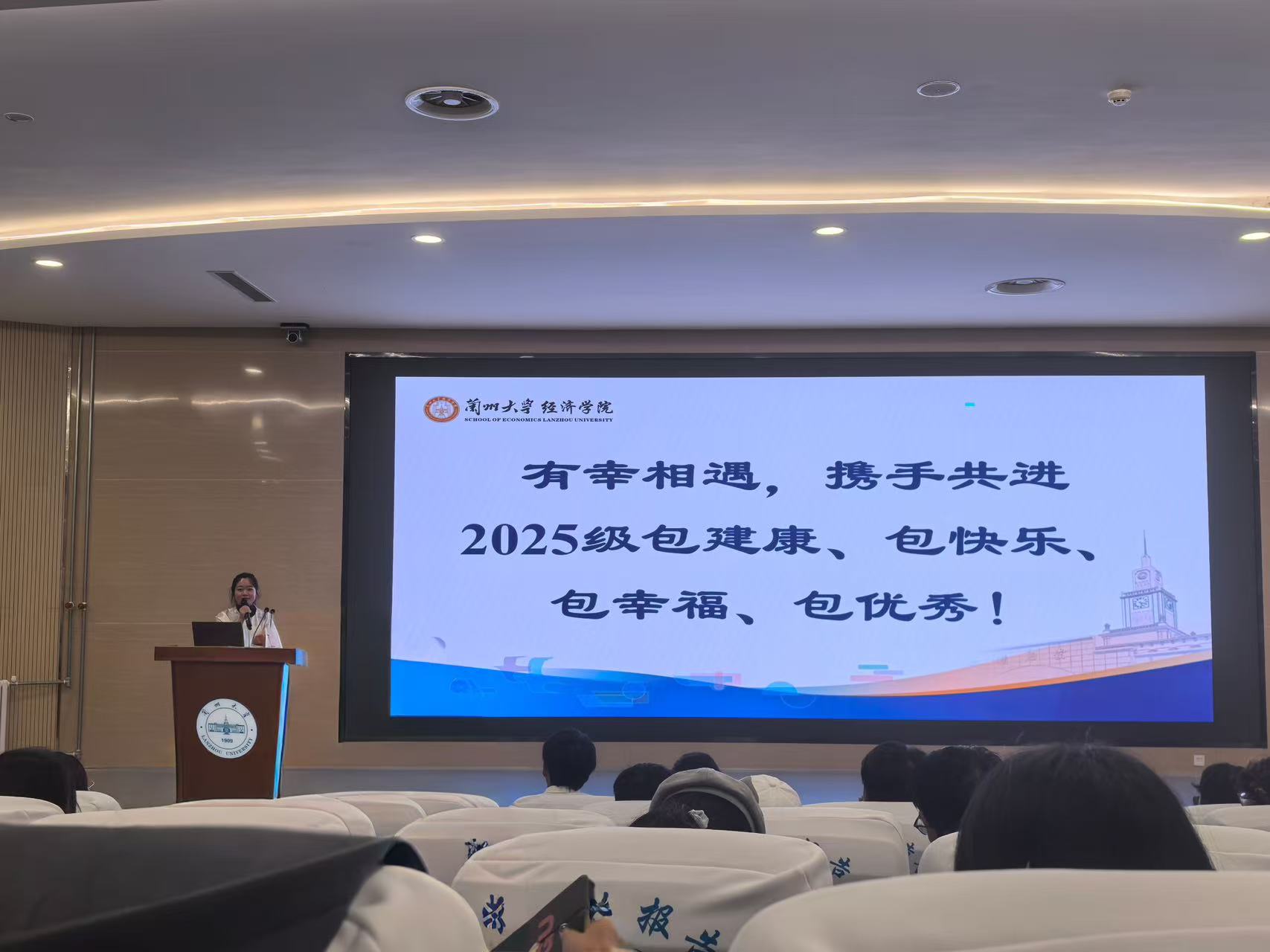 为帮助2025级新生适应大学生活、明晰发展方向,9月21日下午,经济学院在榆中校区宏远楼报告厅召开2025级本科生入学教育大会。本次大会由2025级专职辅导员唐佳欣主讲,2025级全体新生及副班主任参与。