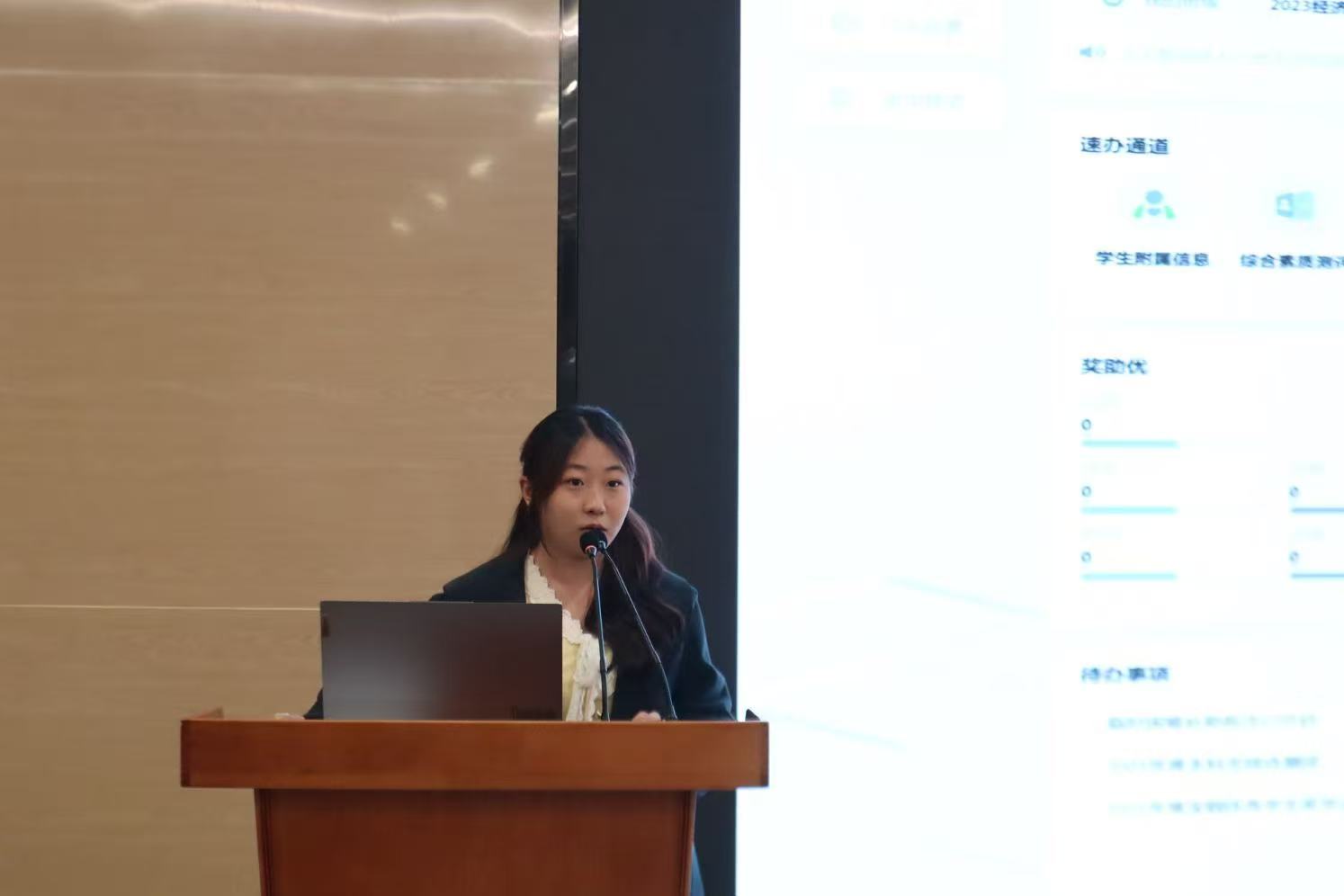 最后,副班主任陈灵溪为新生展示学校网站、学院网站、个人工作平台、邮箱、新学工系统、教务系统和服务大厅等常用网站的实操步骤,帮助新生掌握数字工具,提升学习生活效率。