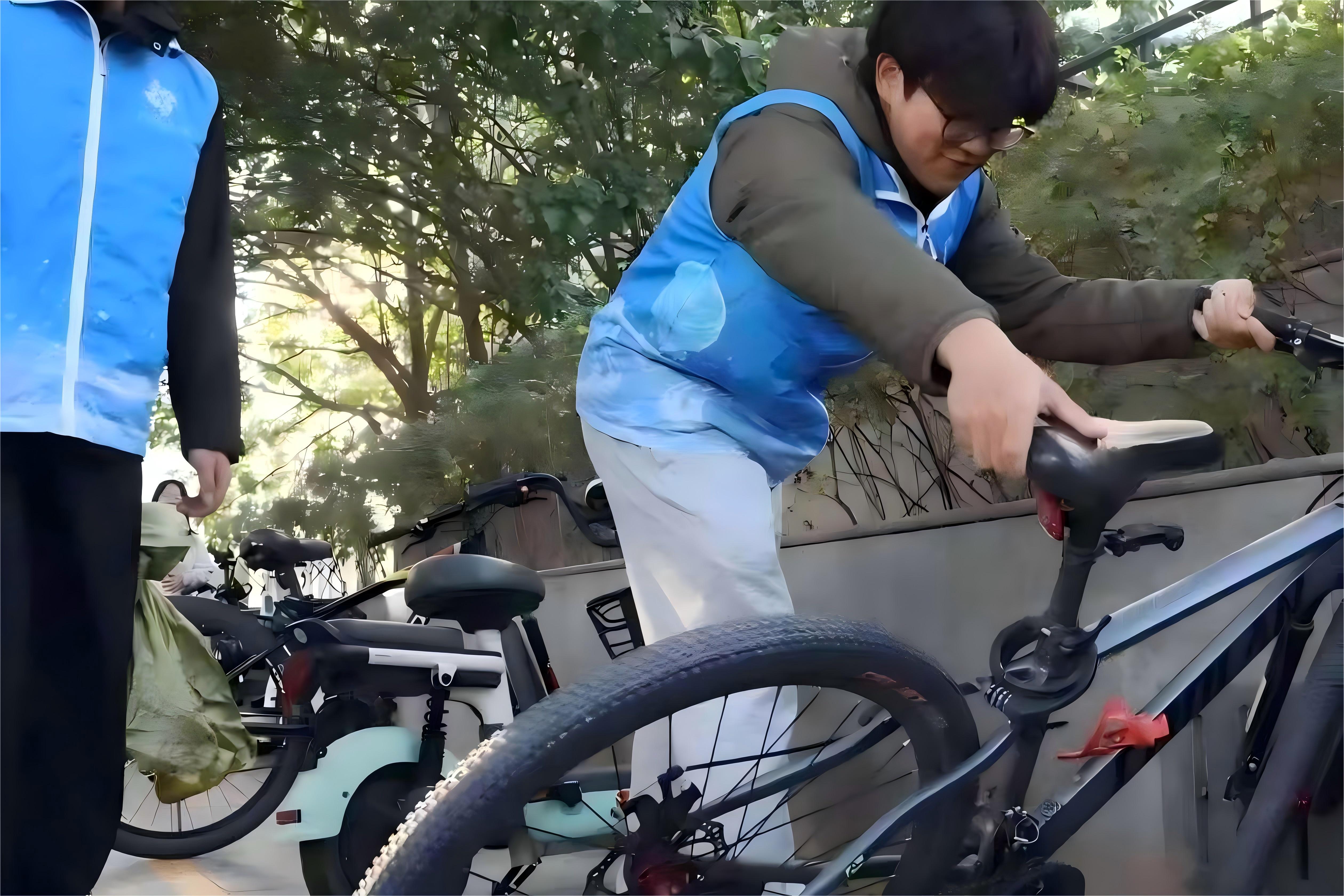 10月18日下午,入团积极分子积极参与“四院联合扶单车”志愿服务活动。同学们分工明确、协作有序,对校园内停放不规范的共享单车进行了整理与归位,有效改善了校园停车秩序与环境面貌。通过本次实践,同学们切实增强了责任意识与团队协作能力,生动践行了“奉献、友爱、互助、进步”的志愿服务精神,营造出整洁有序、文明和谐的校园氛围。
