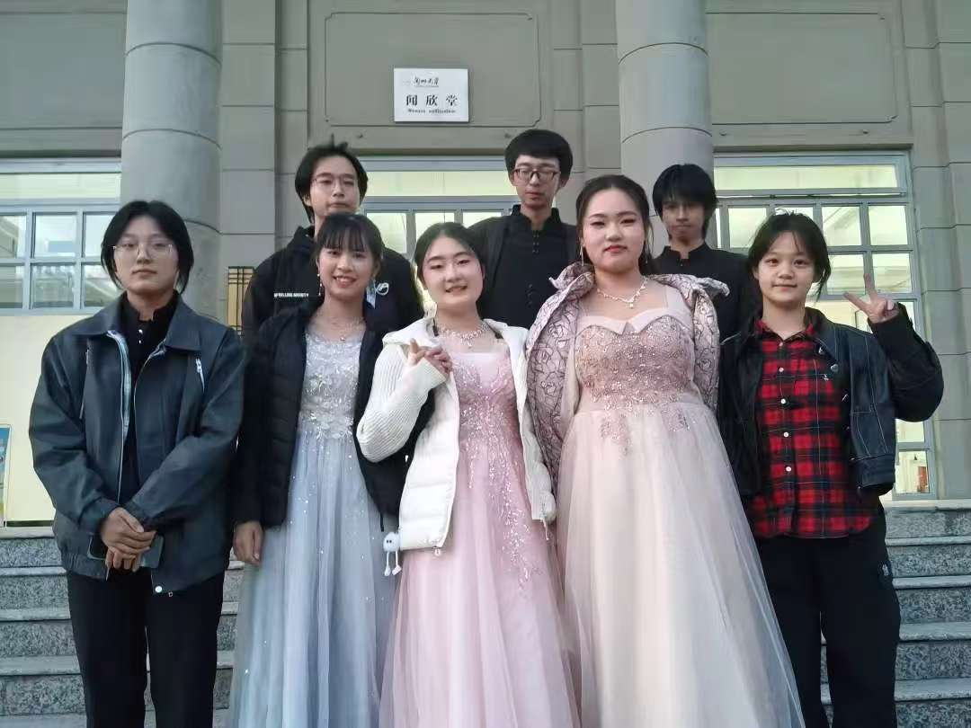 演出结束时,闻欣堂前的台阶上,时光仿佛在此刻定格。照片中,同学们的脸上依然充斥着表演时的激动与成功的喜悦。这份沉甸甸的荣誉,属于在舞台上光芒四射的每一位演员,更属于在幕后默默付出的每一位同学。他们的努力,正如同《不忘初心》歌词中所唱的“每一滴汗水都是青春的注脚”,最终汇聚成舞台上那道耀眼的光芒。