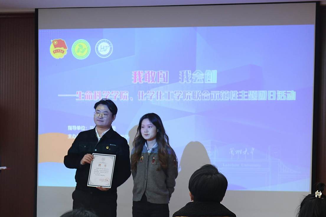 为深入贯彻习近平总书记给中国国际大学生创新大赛参赛学生代表的重要回信精神,落实学校“以赛促教、以赛促学、以赛促创”的创新创业教育理念,进一步深化跨学科认知、激发青年学子潜能,11月20日,生命科学学院团委与化学化工学院团委联合主办的“我敢闯 我会创”示范性主题团日活动在榆中校区学术交流中心成功举办。