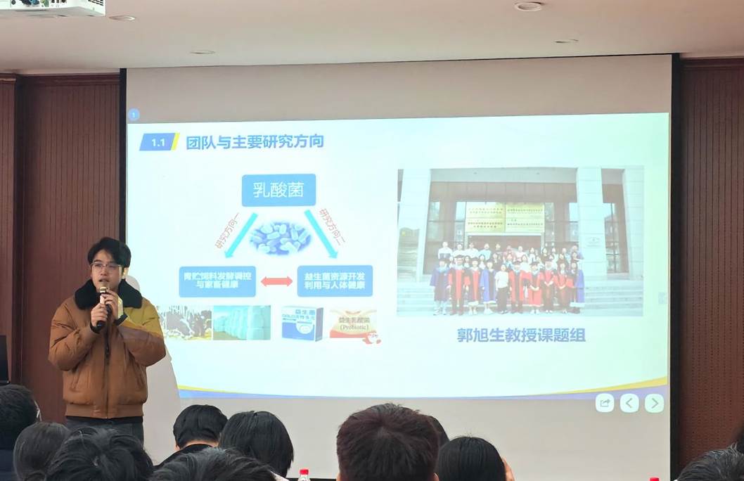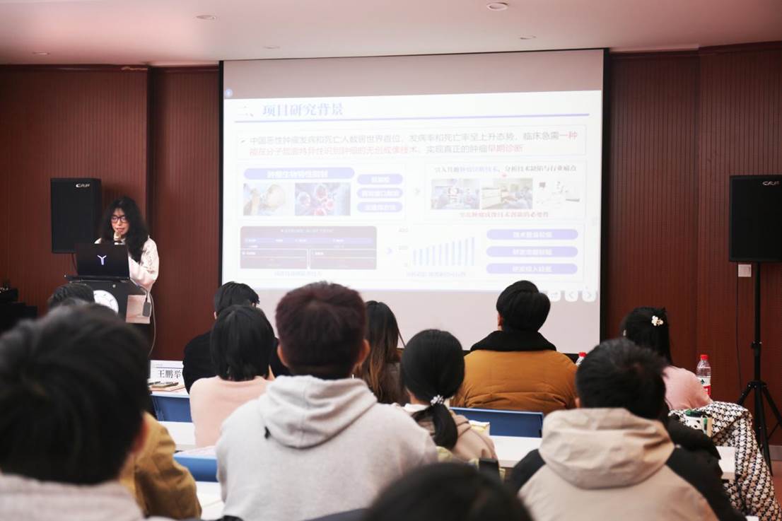 中国国际大学生创新大赛高教主赛道银奖获得者李强同学,聚焦“科研成果从实验室走向竞赛场”的全链条转化,进行了精细化拆解。他结合自身项目,从背景调研、方案设计、落地实施到核心优势提炼,系统分享了科研成果产业化的实践路径,生动诠释了学校“产学研协同育人”模式的育人成效。