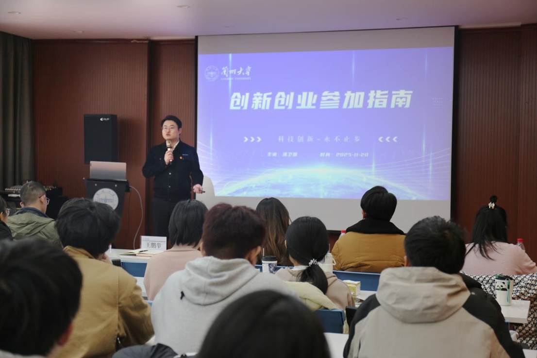 分享环节结束后,兰州大学创新发展与实践中心副主任汤卫国作总结指导。他指出,优秀创新创业项目的培育,离不开学校“院-校-省-国”四级阶梯式创新实践训练体系,强调必须以专业为根基、以问题为导向。他提出要紧扣国家“十五五”规划与产业需求,在“新医科”“新农科”等重点领域推动学科交叉突破,并鼓励两院青年早规划、早实践,在科技创新中勇当先锋,为下一届大赛积蓄力量。