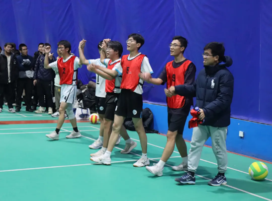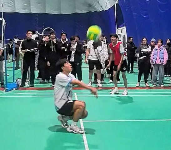 材料与能源学院队员们配合默契,攻防转换迅速,一次次精彩的扣杀引得全场欢呼。第一临床医学院也不甘示弱,多次组织有效进攻,顽强反击。首局末尾,材料与能源学院凭借稳定的发挥以微弱优势取胜。