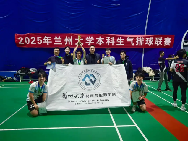 12月2日下午兰州大学穹顶球馆内人声鼎沸、激情燃烧。备受瞩目的兰州大学气排球决赛在这里上演巅峰对决。22级材料物理温暖,22级材料化学陈卓,23级材料化学杨宇翔,23级新能源材料与器件赵瑞,25级材料二班谢天旭五名同学代表材料与能源学院参战!
