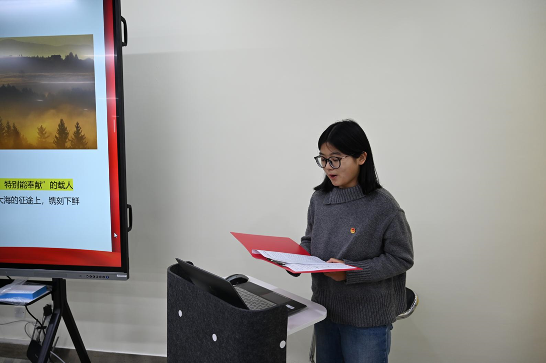 活动伊始,全体成员齐唱中国共产主义青年团团歌。学生党员宣讲团成员殷凯悦以《荒漠到星辰,陇原大地的千年飞天逐梦之旅》为题,通过讲述航天人艰苦奋斗的内心世界和现代航天工程的科研攻坚,展现出航天人“特别能吃苦、特别能战斗、特别能攻关、特别能奉献”的精神品格。现场同学深受触动,纷纷结合自身经历分享感悟:“作为从小在火箭轰鸣声中长大的酒泉人,‘载人航天精神’对我们来说不是遥远的口号,而是刻进生命里的共鸣。这种精神激励着我们,无论未来身在何方,都要带着这份坚韧与热爱,在自己的领域里发一份光、放一分热。”